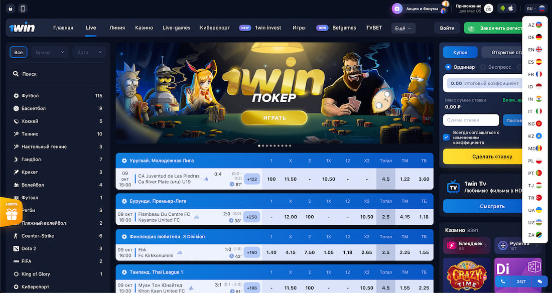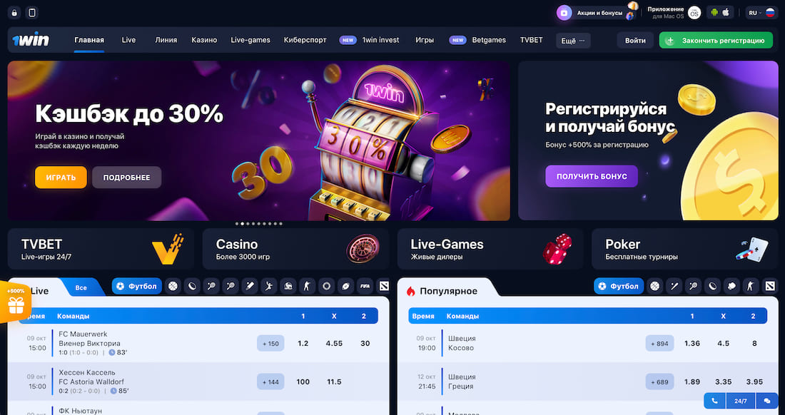 Официальный сайт сasino 1 Вин – стильная электронная платформа с отлично продуманным интерфейсом, удобной навигацией и широким функционалом. Информационные баннеры, которые часто появляются на титульной странице, уведомляют посетителей о действующих бонусах, акциях и турнирах. В связи с широкой географией клиентов казино, веб-ресурс представлен на многих языках – европейских и азиатских. На титульной странице веб-портала можно найти информацию о событиях, на которые можно сделать Live-ставку. Также здесь представлены наиболее популярные предстоящие спортивные события.